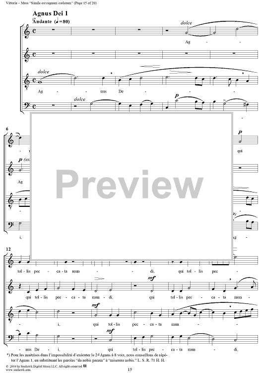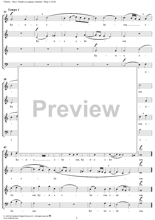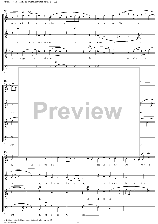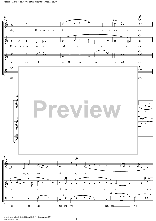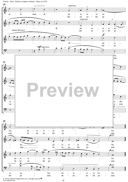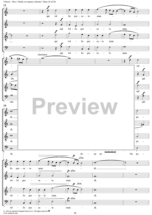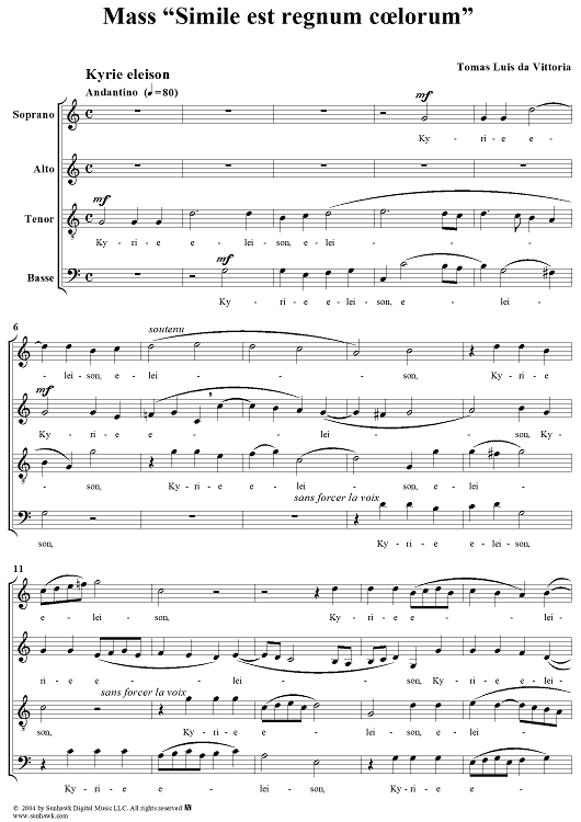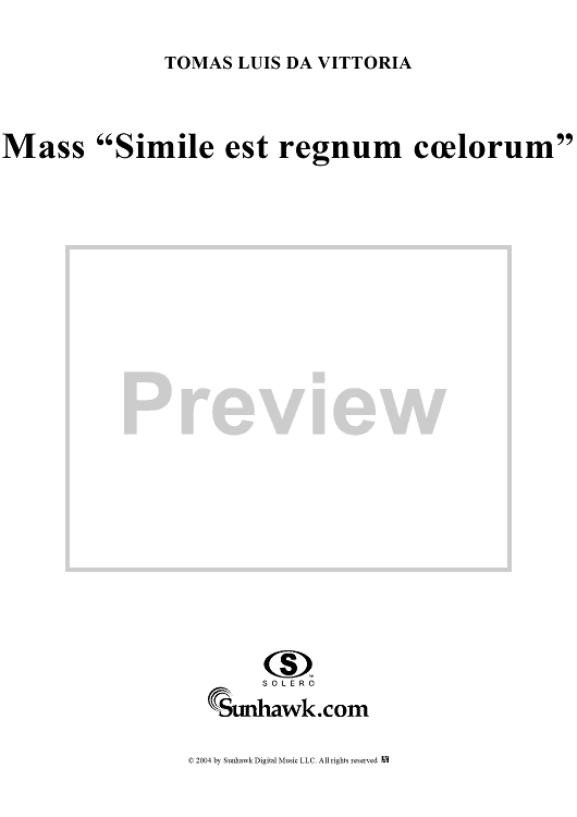Digital Sheet Music for Mass "Simile est regnum coelorum" by Tomás Luis de Victoria scored for Four-part Mixed Chorus; id:305117