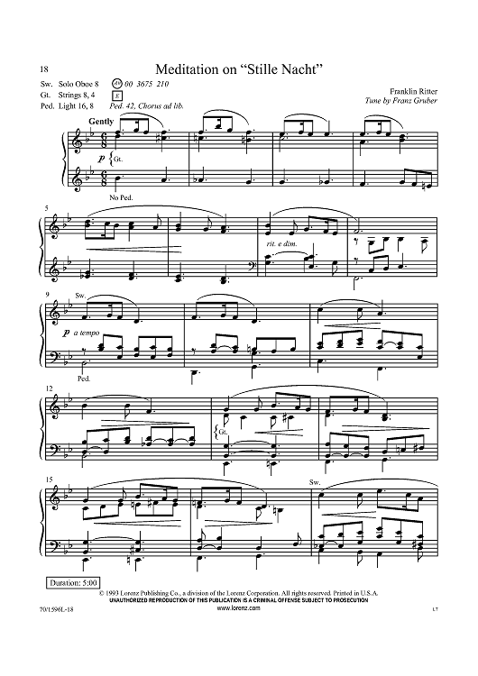 Digital Sheet Music for Meditation on “Stille Nacht” by Franz Xaver Gruber, Franklin Ritter scored for Organ Solo; id:434846