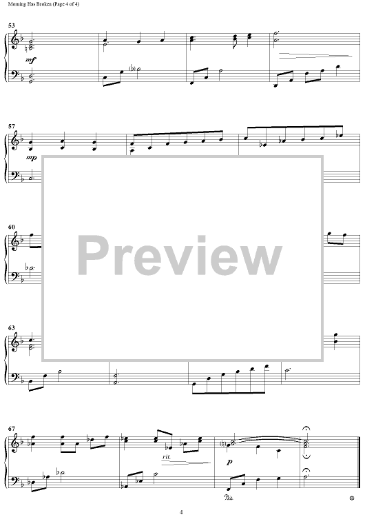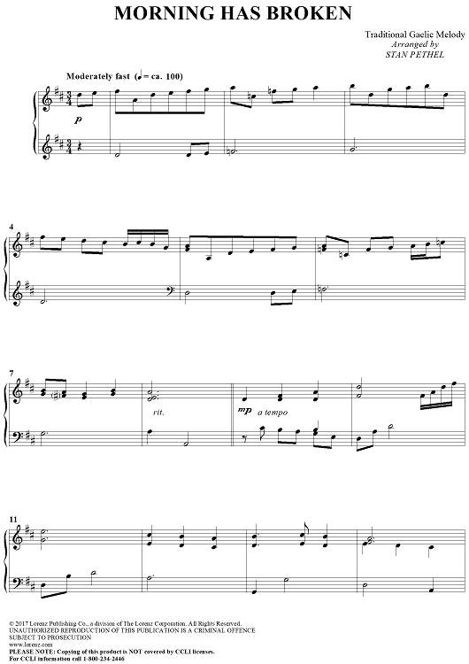 Digital Sheet Music for Morning Has Broken by Traditional Gaelic Melody, Stan Pethel scored for Piano Solo; id:465580