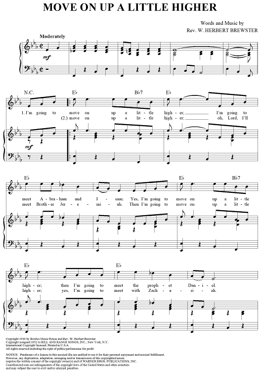 Digital Sheet Music for Move On Up a Little Higher by Mahalia Jackson, W. Herbert Brewster scored for Piano/Vocal/Chords; id:356055