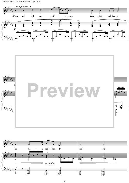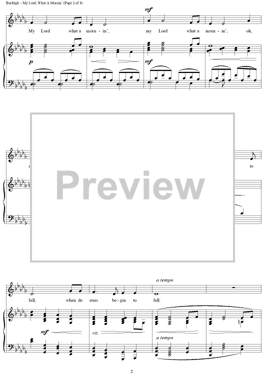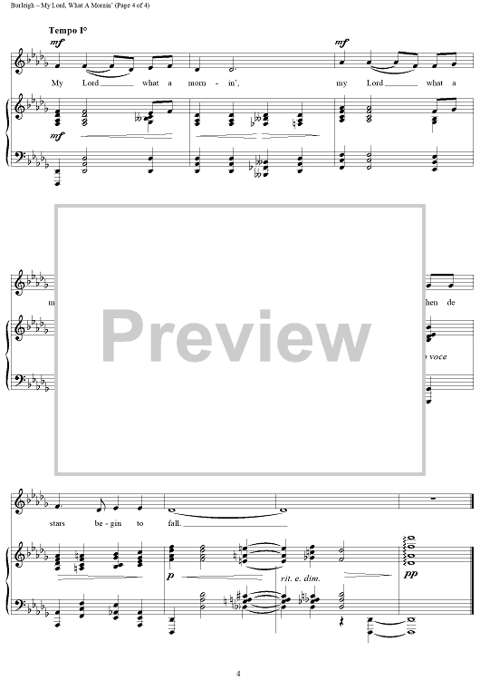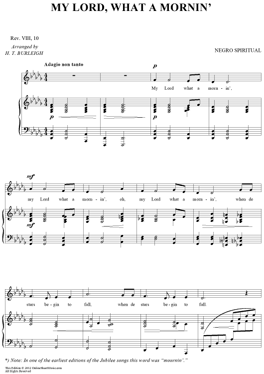 Digital Sheet Music for My Lord, What A Mornin' by H. T. Burleigh, African American Spiritual scored for Piano/Vocal; id:433139