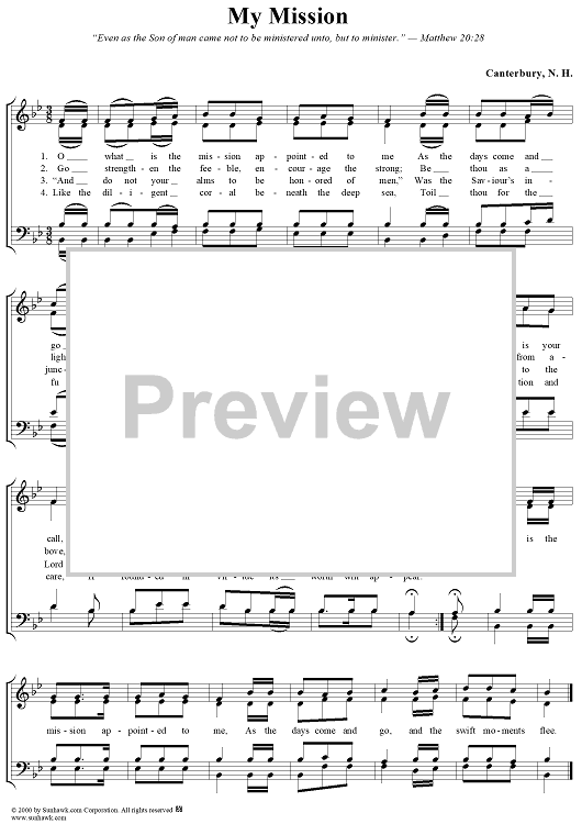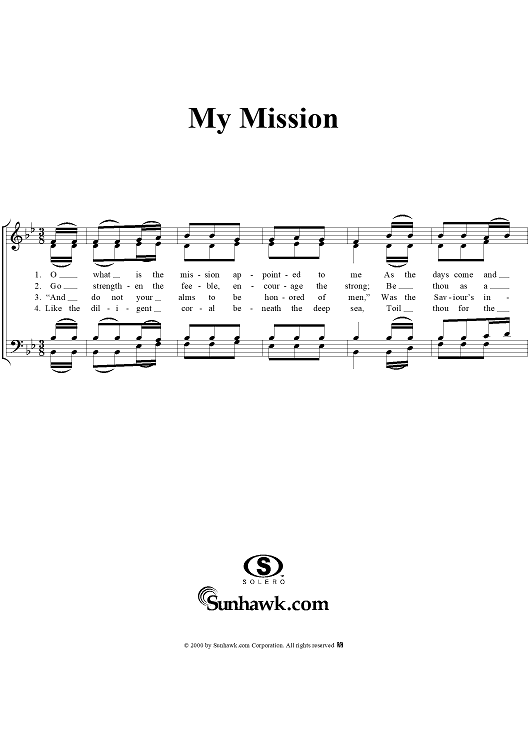 Digital Sheet Music for My Mission by Unknown Writer scored for Four-part Mixed Chorus; id:277552