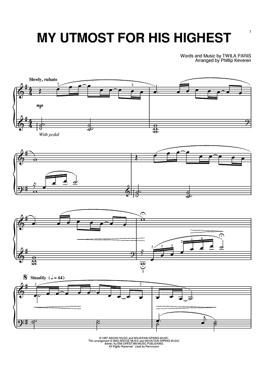 Digital Sheet Music for My Utmost For His Highest by Twila Paris, Phillip Keveren scored for Piano; id:396529