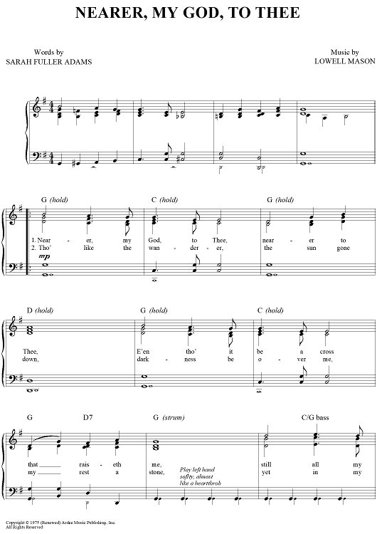 Digital Sheet Music for Nearer, My God, To Thee by Lowell Mason, Sarah F. Adams scored for Easy Piano/Vocal/Chords; id:432876