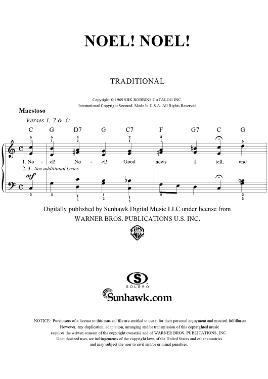 Digital Sheet Music for Noel! Noel! by Traditional scored for Easy Piano/Vocal; id:261604