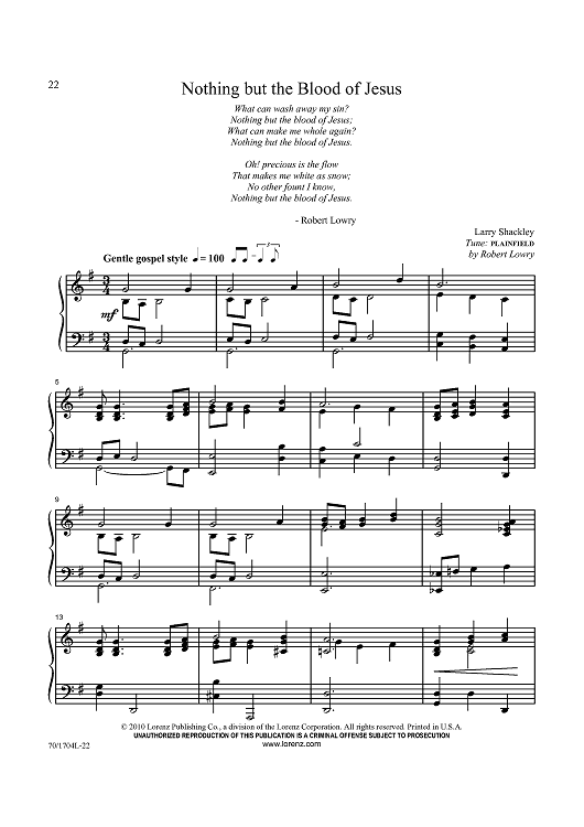 Digital Sheet Music for Nothing but the Blood of Jesus by Robert Lowry, Larry Shackley scored for Piano Solo; id:434158