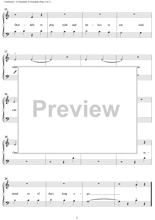 "O Chanukah, O Chanukah" Sheet Music by Traditional
