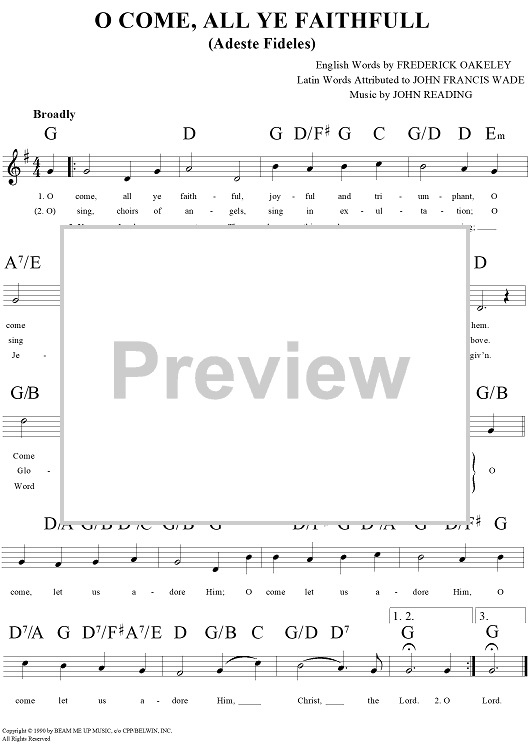 Digital Sheet Music for O Come, All Ye Faithful (Adeste Fideles) by Frederick Oakeley, John Reading scored for Lead Sheet; id:118739