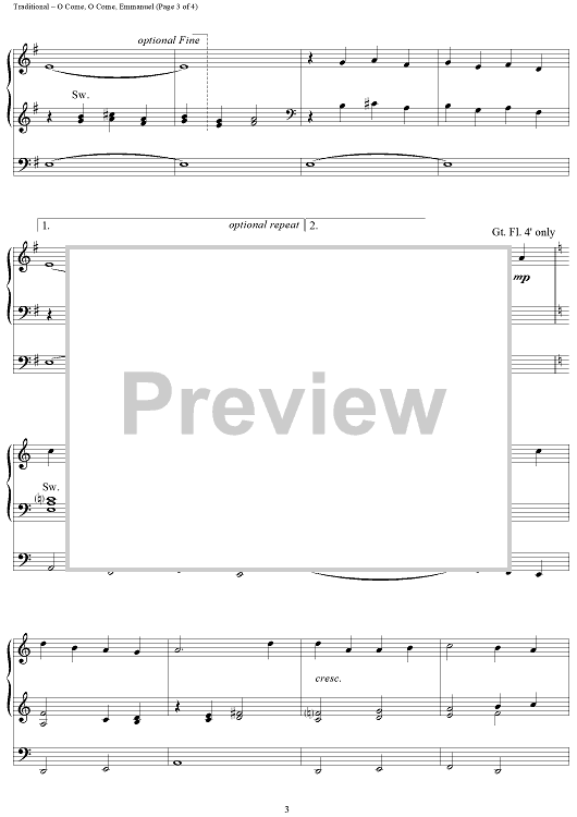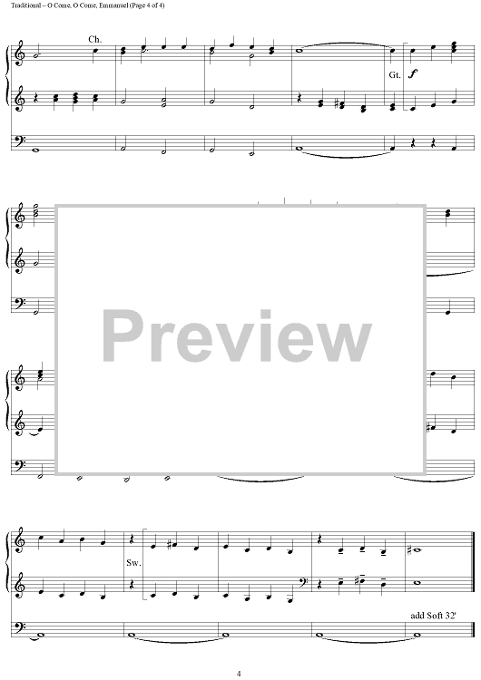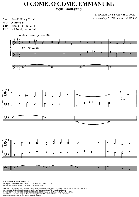 Digital Sheet Music for O Come, O Come, Emmanuel by Ruth Elaine Schram scored for Organ Solo; id:291166