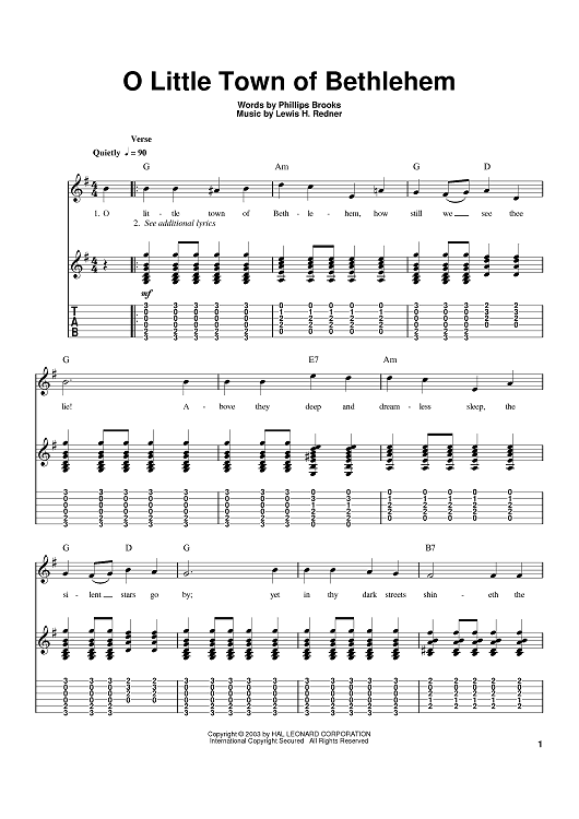 Digital Sheet Music for O Little Town Of Bethlehem by Phillips Brooks, Lewis H. Redner scored for Guitar Tab; id:374245