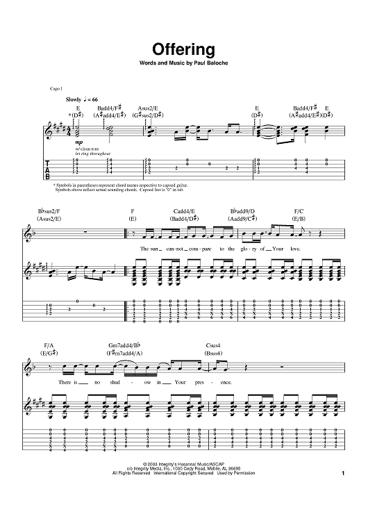 Digital Sheet Music for Offering by Paul Baloche scored for Guitar Tab; id:394871