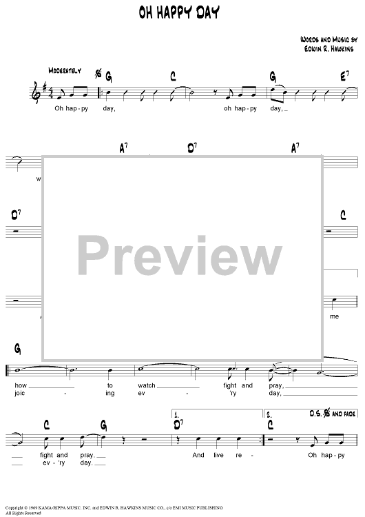 Digital Sheet Music for Oh Happy Day by Edwin R. Hawkins scored for Lead Sheet; id:290532
