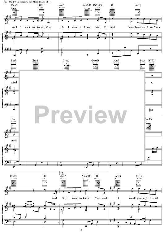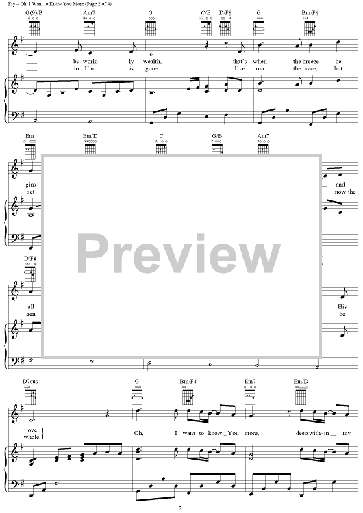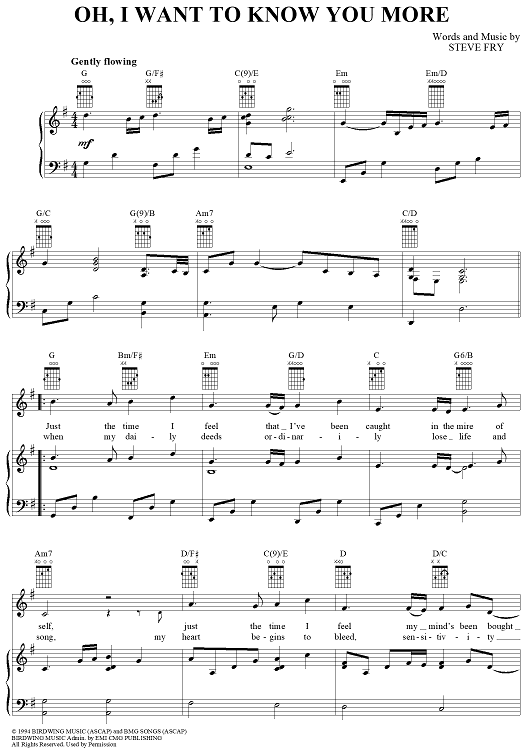 Digital Sheet Music for Oh, I Want to Know You More by Steve Fry, Steve Green scored for Piano/Vocal/Chords; id:386607