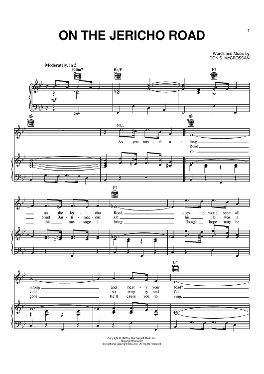 Digital Sheet Music for On The Jericho Road by Don S. McCrossan scored for Piano/Vocal/Chords; id:370775