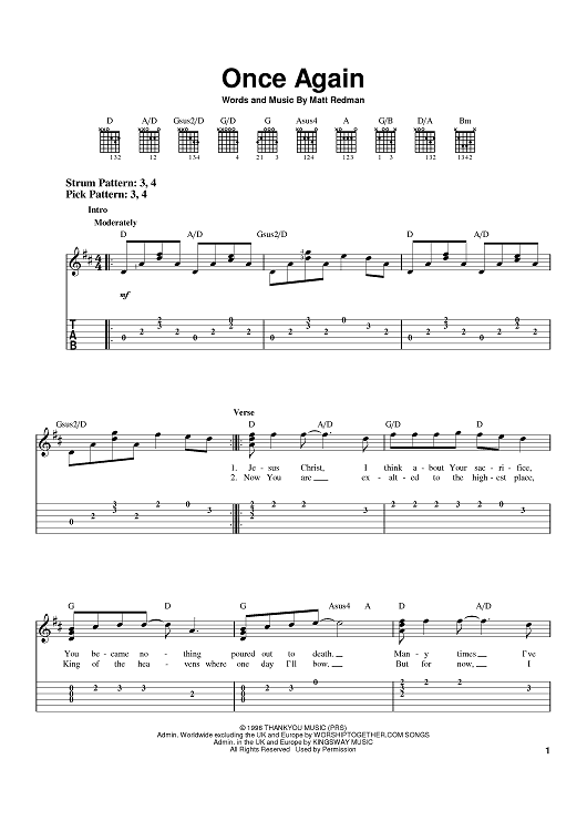 Digital Sheet Music for Once Again by Matt Redman scored for Easy Guitar Tab; id:375401