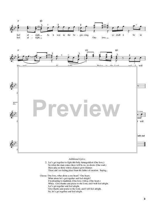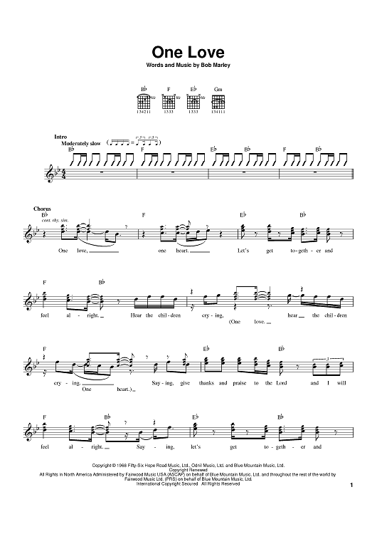 Digital Sheet Music for One Love by Bob Marley scored for Lead Sheet with Guitar Grids; id:386680