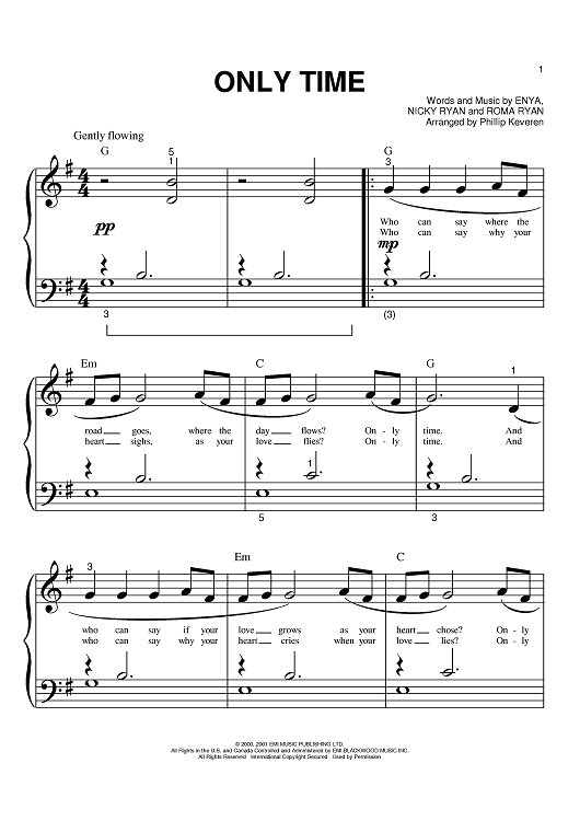 Digital Sheet Music for Only Time by Enya, Nicky Ryan, Roma Ryan, Phillip Keveren scored for Big Note Piano; id:396695