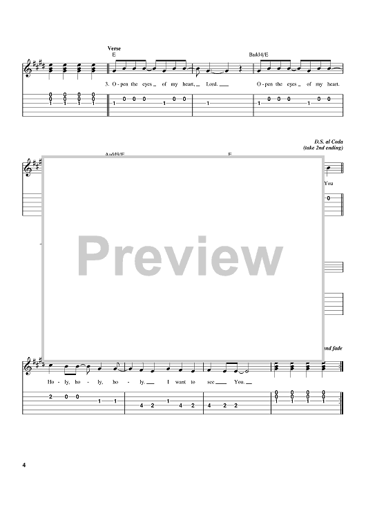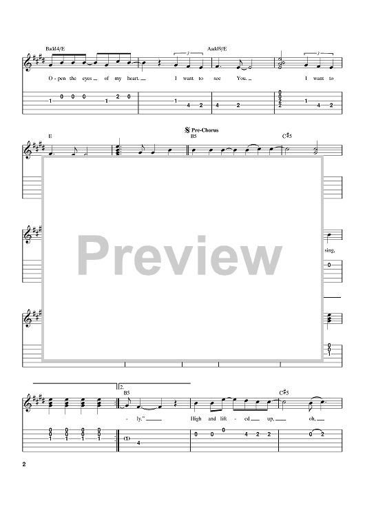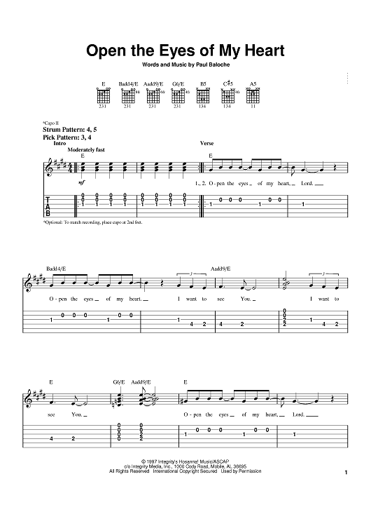Digital Sheet Music for Open The Eyes Of My Heart by Paul Baloche, Praise, Sonicflood scored for Easy Guitar Tab; id:372525