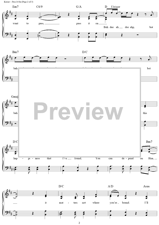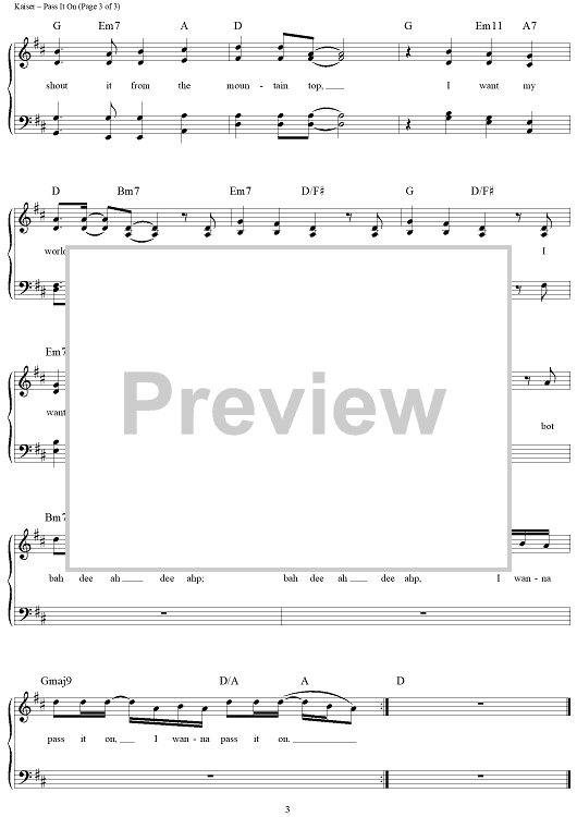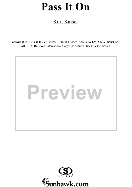 Digital Sheet Music for Pass It On by Kurt Kaiser scored for Piano/Vocal/Chords; id:250302