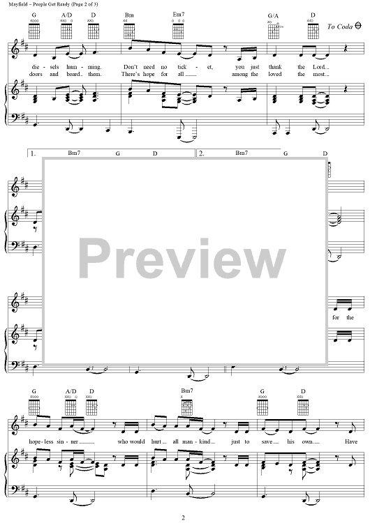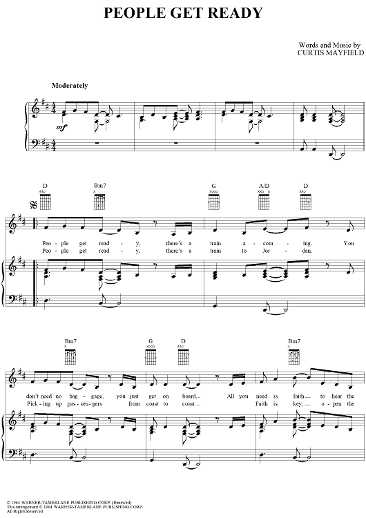 Digital Sheet Music for People Get Ready by Curtis Mayfield scored for Piano/Vocal/Chords; id:120707