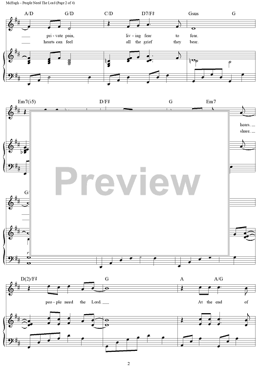 Digital Sheet Music for People Need The Lord by Steve Green, Greg Nelson, Phill McHugh scored for Piano/Vocal/Chords; id:390219