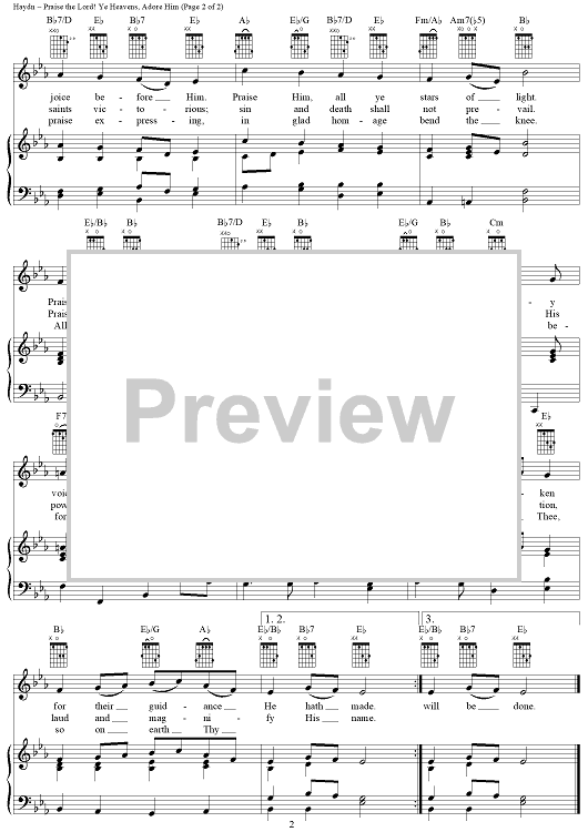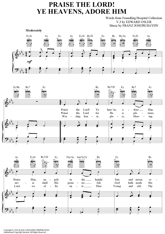Digital Sheet Music for Praise The Lord! Ye Heavens, Adore Him by Franz Joseph Haydn, Founding Hospital Collection, Edward Osler scored for Piano/Vocal/Chords; id:367622