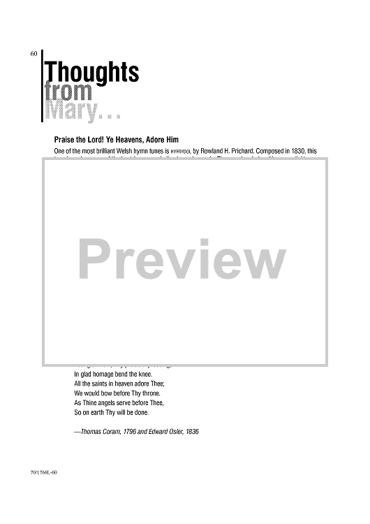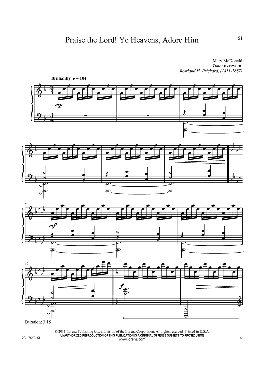 Digital Sheet Music for Praise the Lord Ye Heavens, Adore Him by Mary McDonald scored for Piano Solo; id:433684