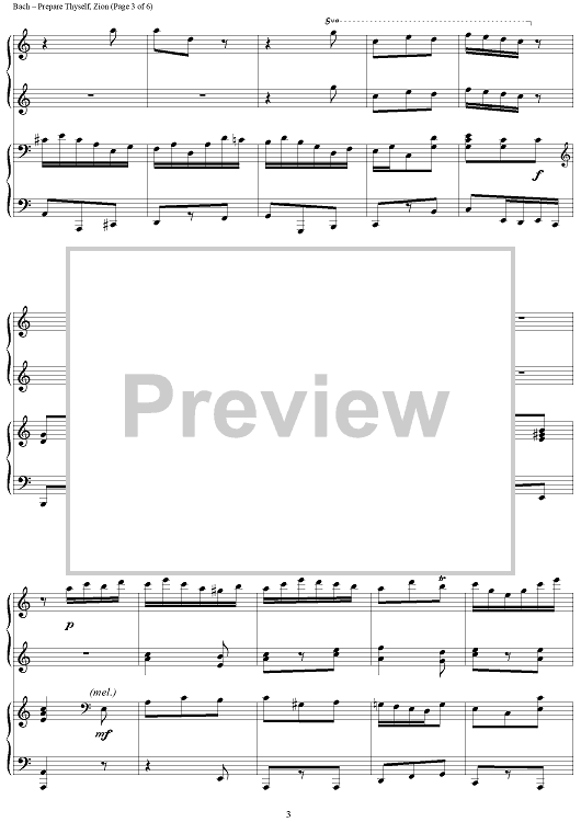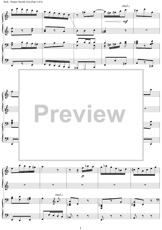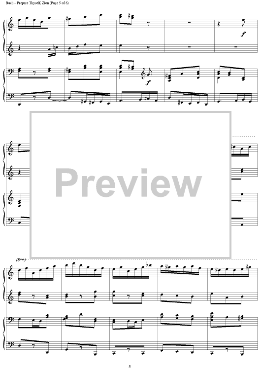 Digital Sheet Music for Prepare Thyself, Zion (from the Christmas Oratorio) by Johann Sebastian Bach, Larry Shackley scored for 1 Piano, 4 Hands; id:434820