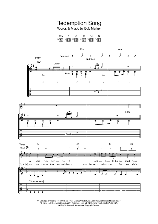 "Redemption Song" Sheet Music by Bob Marley