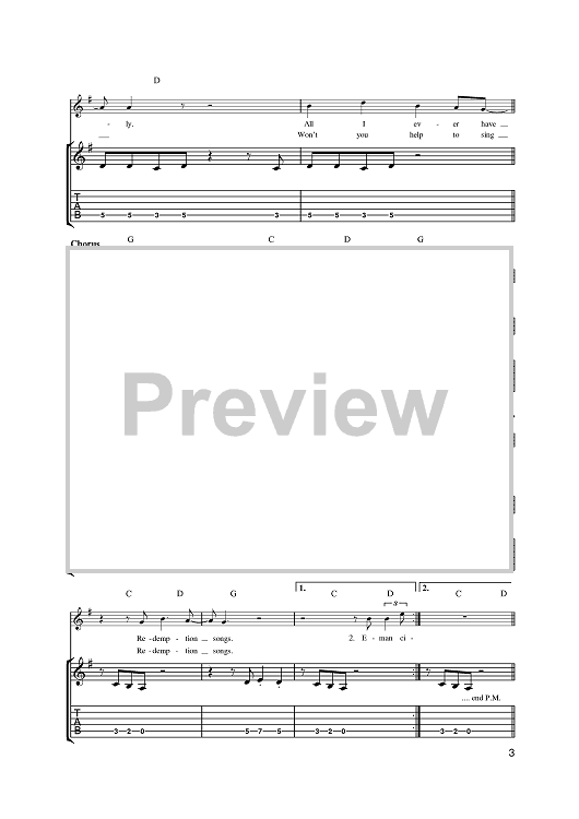 Digital Sheet Music for Redemption Song by Bob Marley scored for Guitar Tab; id:384161