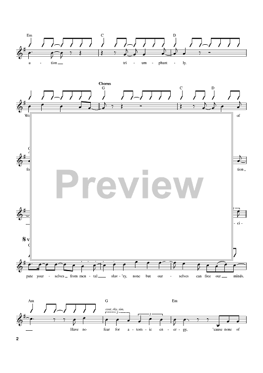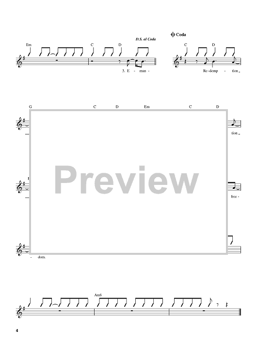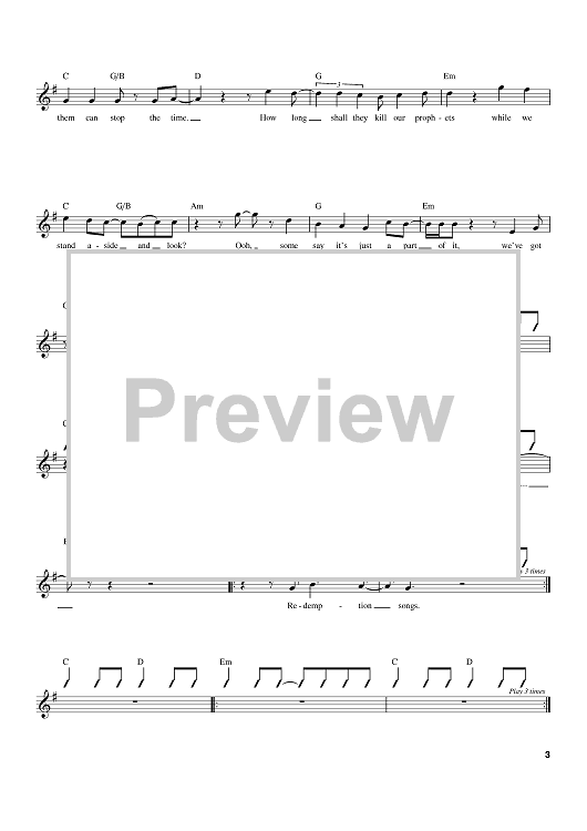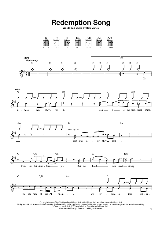 Digital Sheet Music for Redemption Song by Bob Marley scored for Lead Sheet with Guitar Grids; id:386681