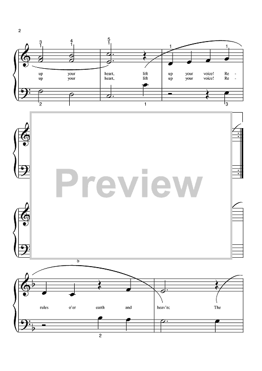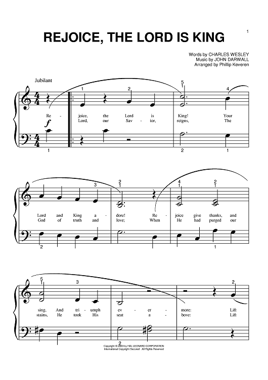 Digital Sheet Music for Rejoice, The Lord Is King by Charles Wesley, John Darwall, Phillip Keveren scored for Big Note Piano; id:372952
