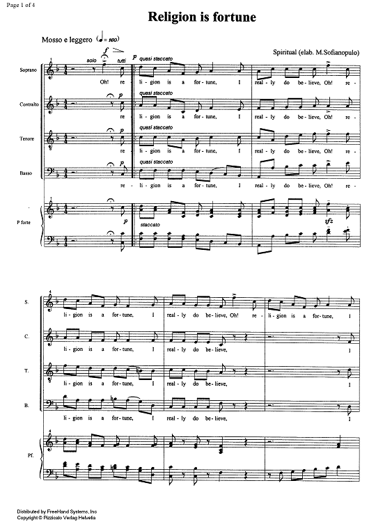Digital Sheet Music for Religion is Fortune by , Marco Sofianopulo, Traditional scored for Choir/Piano; id:329125