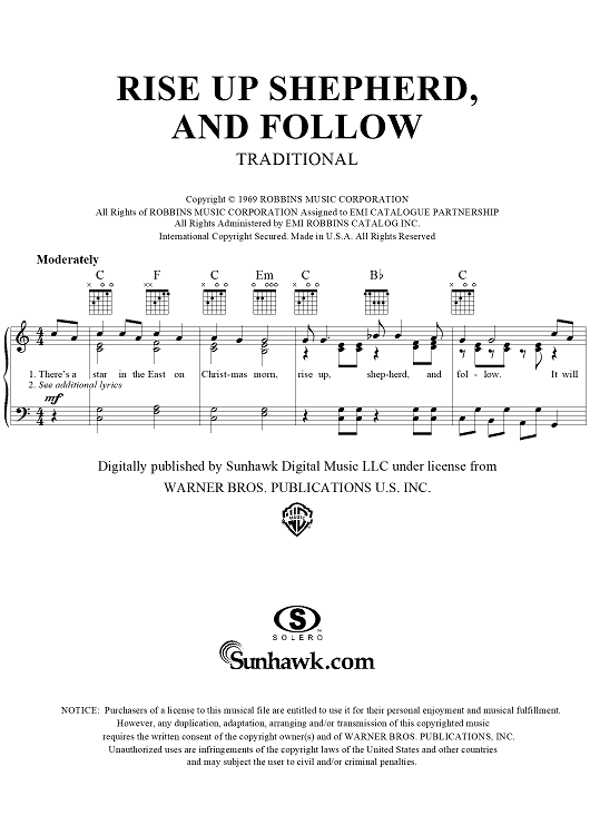 Digital Sheet Music for Rise Up Shepherd, And Follow by Traditional scored for Piano/Vocal/Chords; id:261494