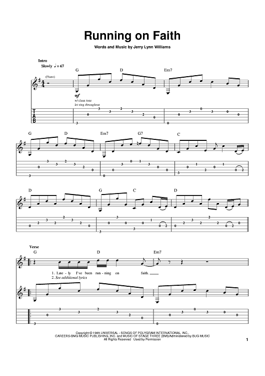 Digital Sheet Music for Running On Faith by Eric Clapton, Jerry Lynn Williams scored for Guitar Tab; id:384812
