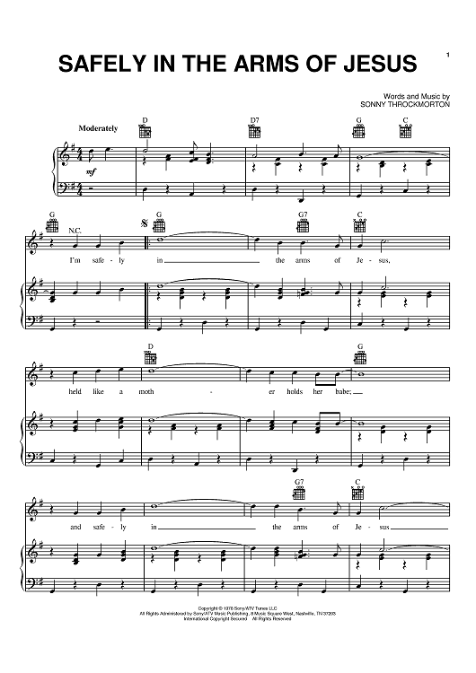 Digital Sheet Music for Safely In The Arms Of Jesus by Sonny Throckmorton scored for Piano/Vocal/Chords; id:371085