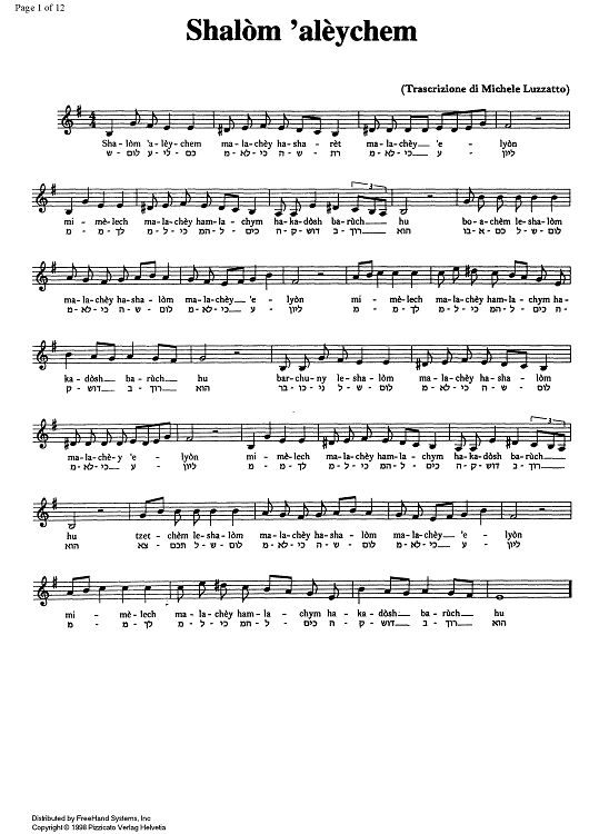 "Shalòm 'aleychem" Sheet Music by Traditional