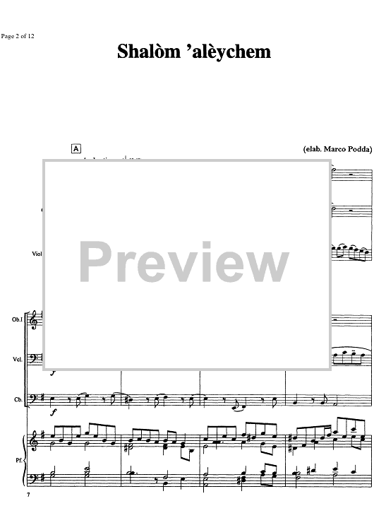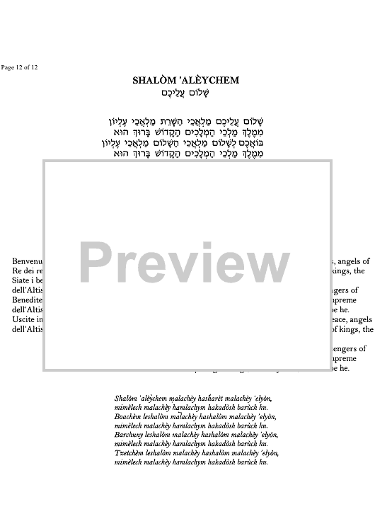 Digital Sheet Music for Shalòm 'aleychem by , Marco Podda, Traditional scored for Baritone Solo/Choir/Ensemble; id:329115