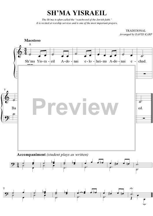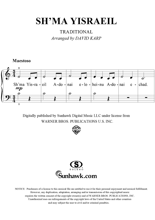 Digital Sheet Music for Sh'ma Yisraeil by David Karp, Traditional scored for Easy Piano/Vocal; id:261833