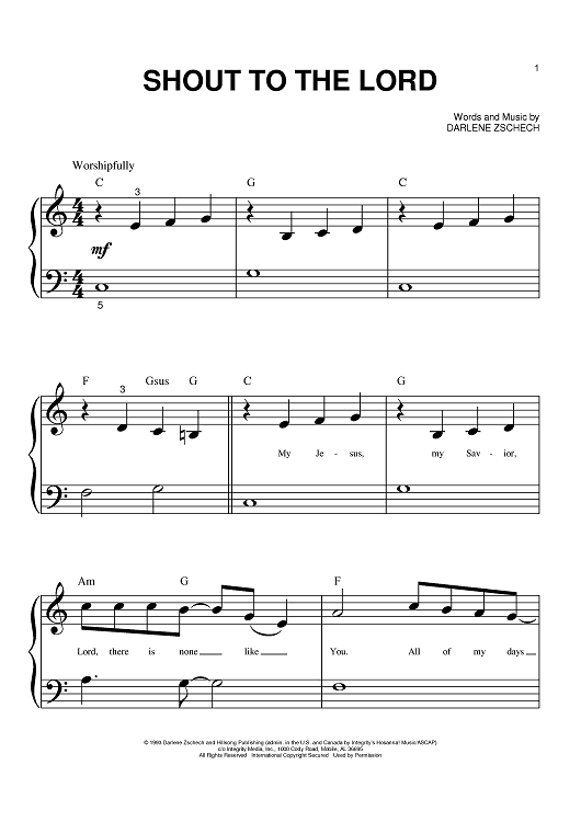 Digital Sheet Music for Shout To The Lord by Carman, Darlene Zschech scored for Big Note Piano; id:382171