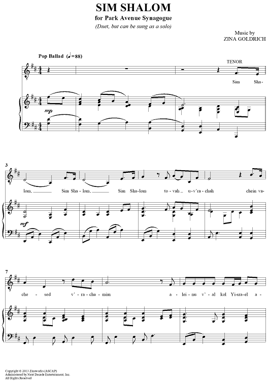 "Sim Shalom" Sheet Music by Zina Goldrich
