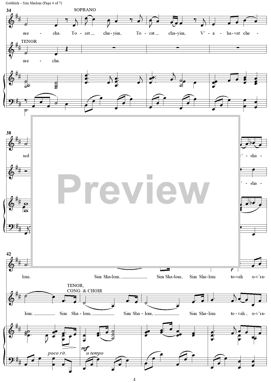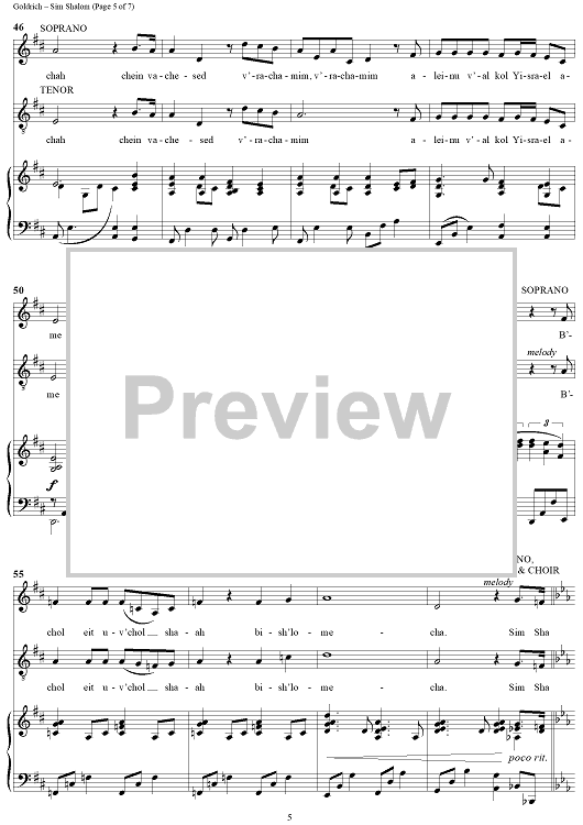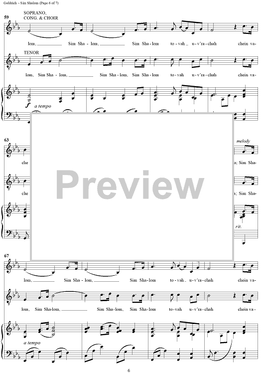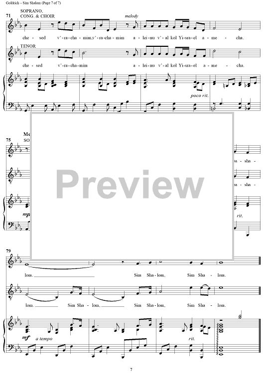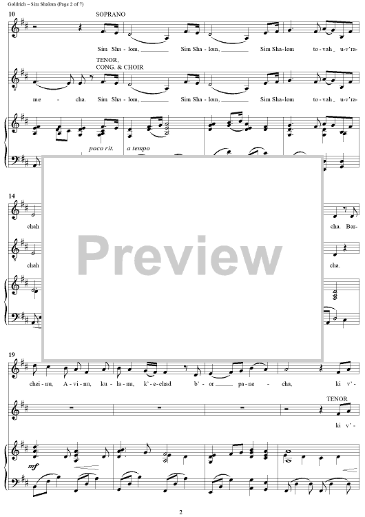 Digital Sheet Music for Sim Shalom by Zina Goldrich scored for Vocal duet and piano; id:454166