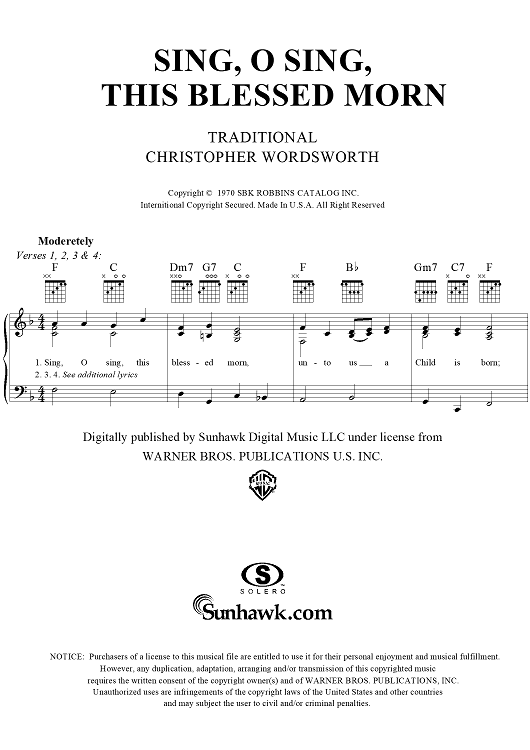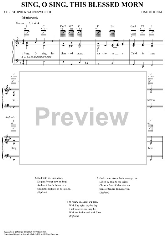 Digital Sheet Music for Sing, O Sing, This Blessed Morn by Christopher Wordsworth, Traditional scored for Piano/Vocal/Chords; id:261854