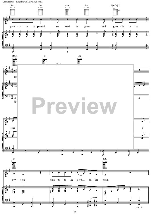 Digital Sheet Music for Sing Unto The Lord by Unknown Writer, Bible scored for Piano/Vocal/Chords; id:368987