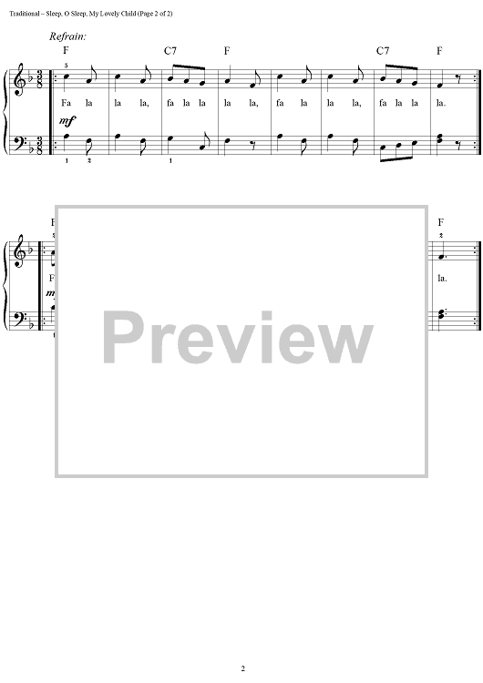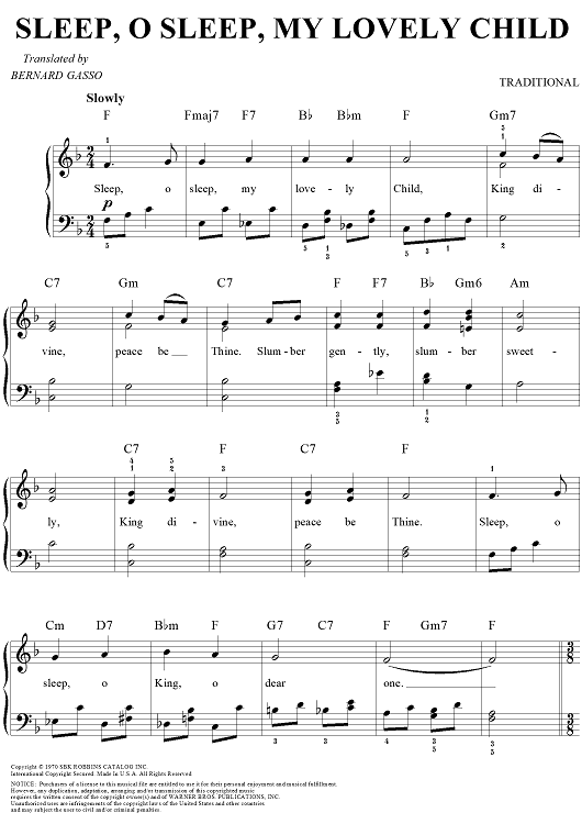 "Sleep, O Sleep, My Lovely Child" Sheet Music by Traditional