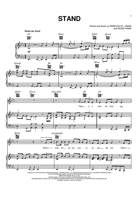 Digital Sheet Music for Stand by Rebecca St. James, Regie Hamm scored for Piano/Vocal/Chords; id:368859