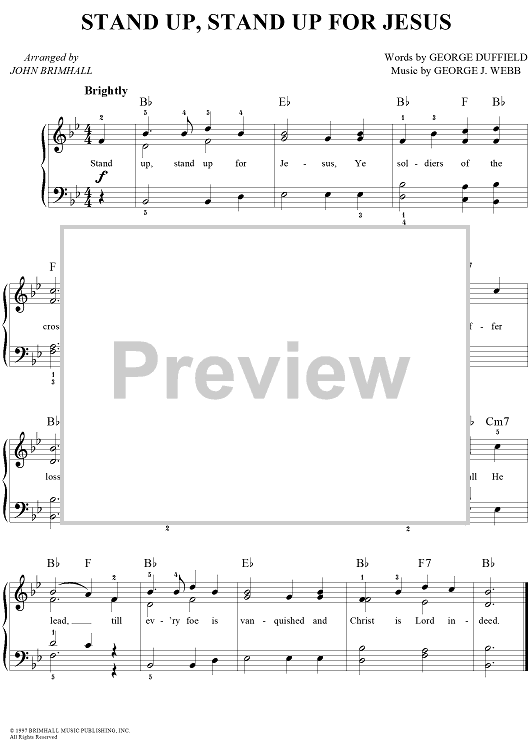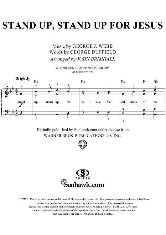 Digital Sheet Music for Stand Up, Stand Up for Jesus by George James Webb, John Brimhall, George Duffield Jr. scored for Easy Piano/Vocal; id:264093