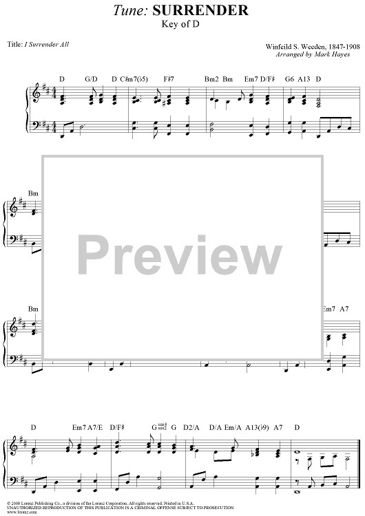 Digital Sheet Music for Surrender by , Mark Hayes, Winfield S. Weeden scored for Piano Solo; id:436672