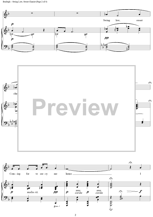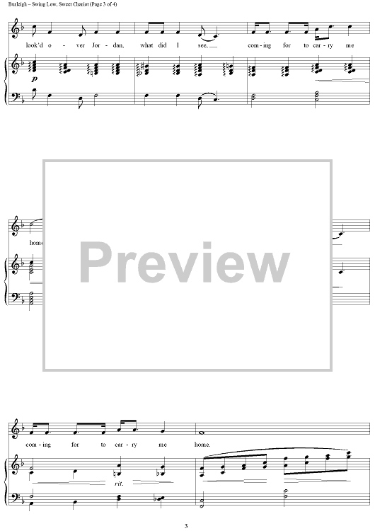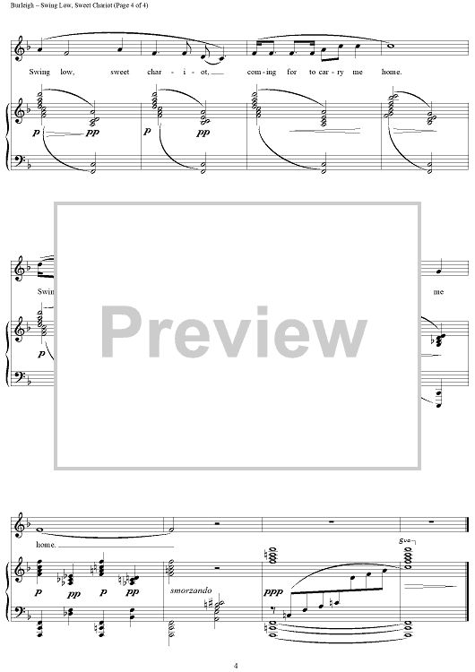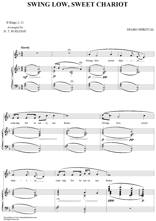 Digital Sheet Music for Swing Low, Sweet Chariot by H. T. Burleigh, African American Spiritual scored for Piano/Vocal; id:433143