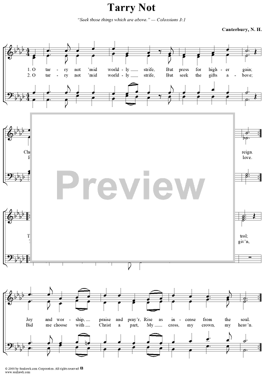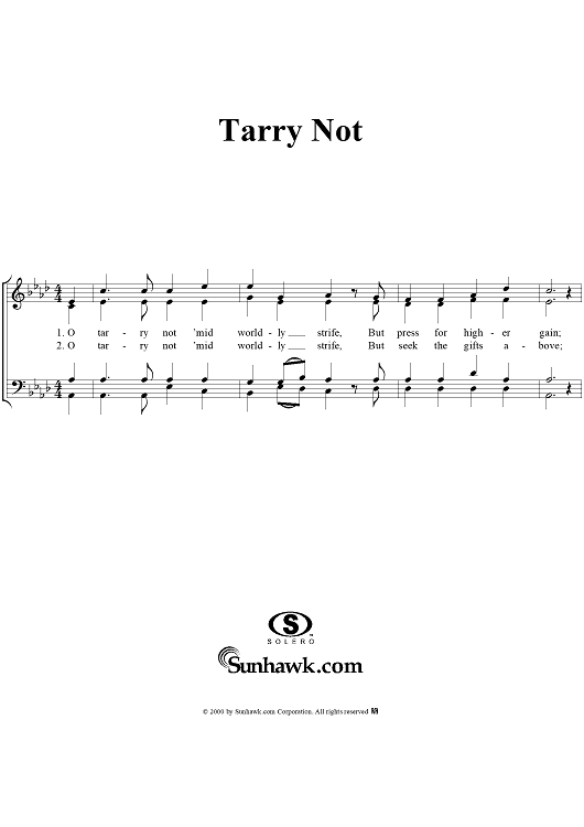 Digital Sheet Music for Tarry Not by Unknown Writer scored for Four-part Mixed Chorus; id:277336